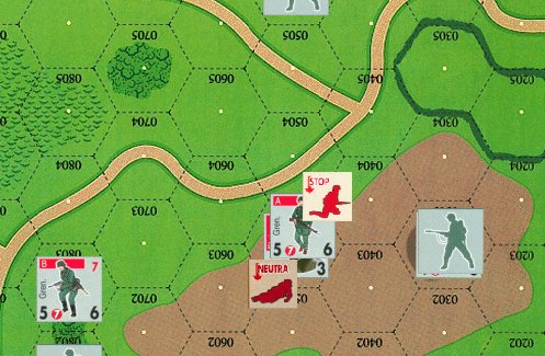 L'unité PC est Neutralisé. L'état Neutralisé est plus grave car une unité neutralisée ne peut plus se déplacer ni même combattre. De plus un PC neutra gène l'activation de sa formation car un malus de -2 est à appliquer au moral du PC. Il faudra faire 6 ou moins pour activer la section rouge Allemande.
